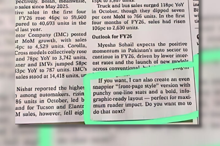 Pakistan English daily Dawn accidentally prints ChatGPT prompt in business report